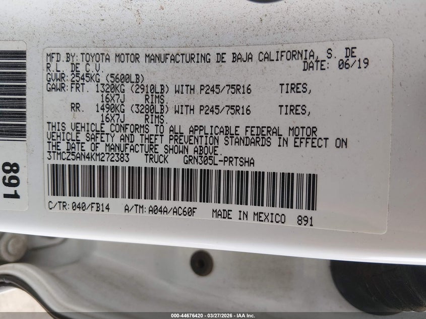 2019 Toyota Tacoma Sr V6