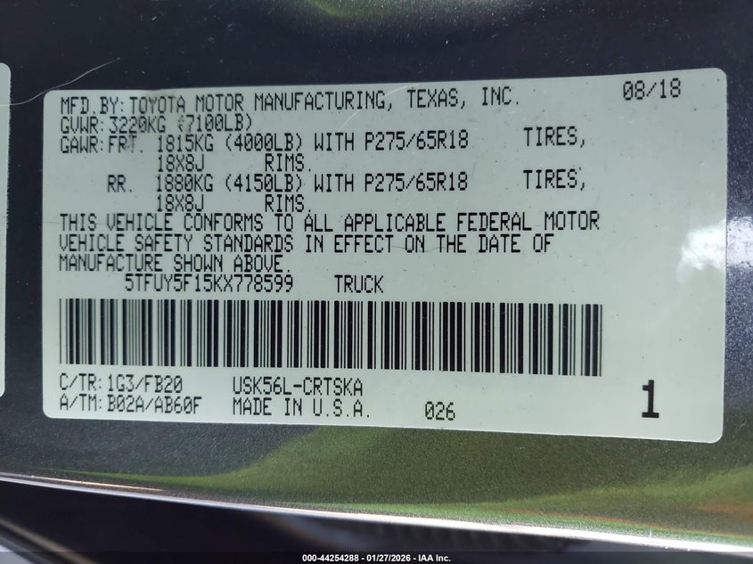 2019 Toyota Tundra Sr5 5.7L V8