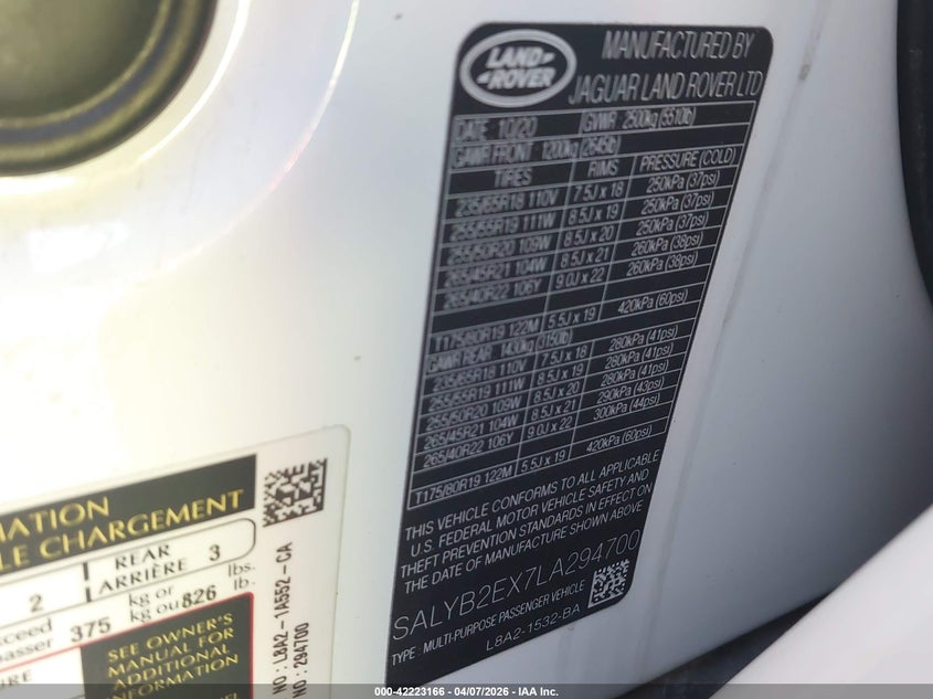 2020 Land Rover Range Rover Velar P250 S