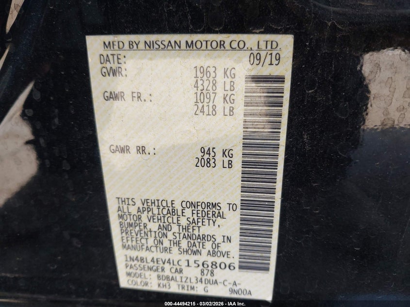 2020 Nissan Altima Sl Fwd