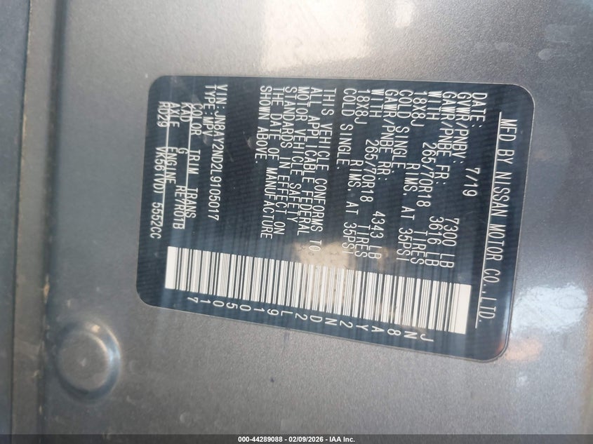 2020 Nissan Armada Sv 2Wd