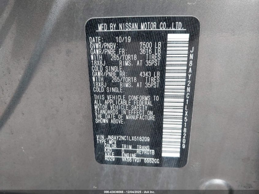 2020 Nissan Armada Sv 4Wd