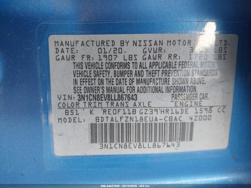 2020 Nissan Versa Sv Xtronic Cvt