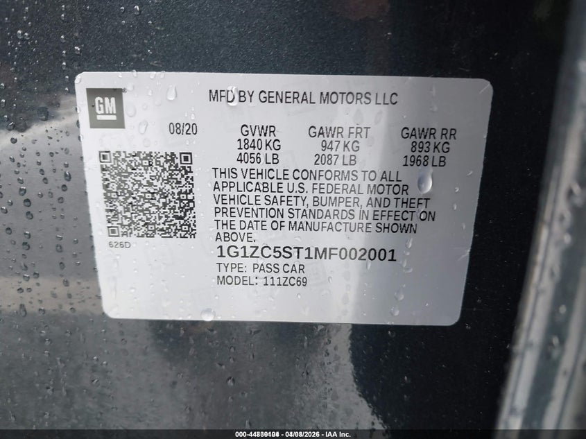 2021 Chevrolet Malibu Fwd 1Fl