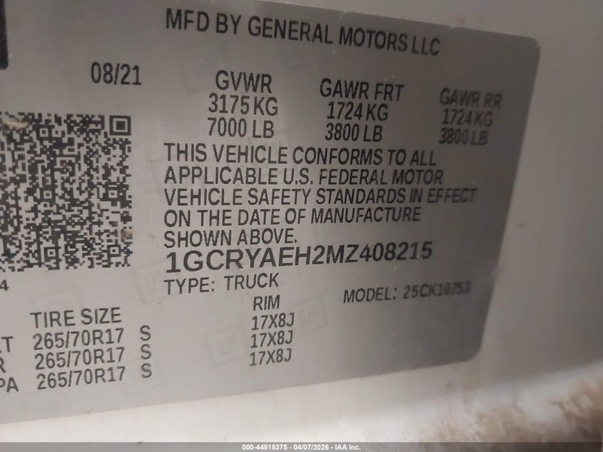 2021 Chevrolet Silverado 1500 4Wd Standard Bed Wt