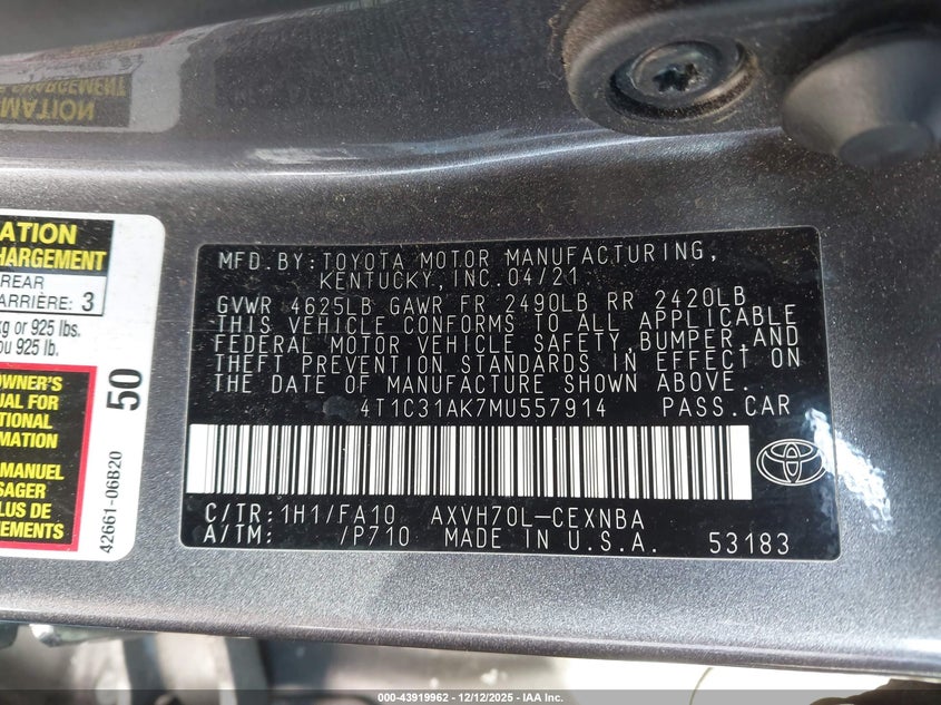 2021 Toyota Camry Le Hybrid