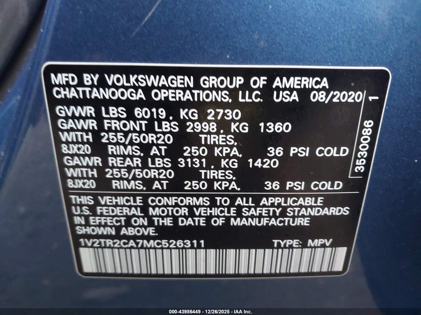 2021 Volkswagen Atlas 3.6L V6 Sel Premium