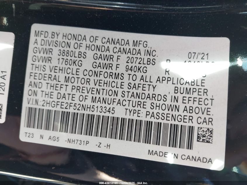 2022 Honda Civic Sport