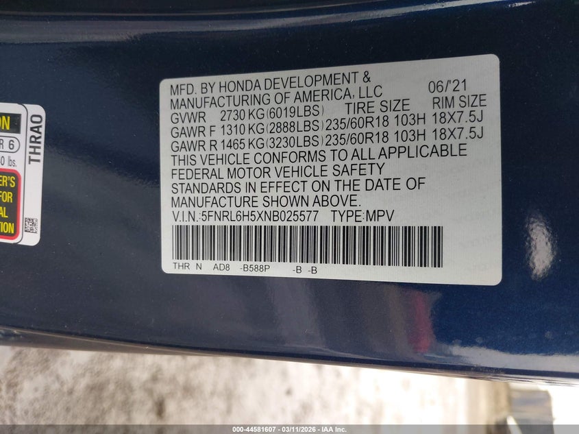 2022 Honda Odyssey Ex