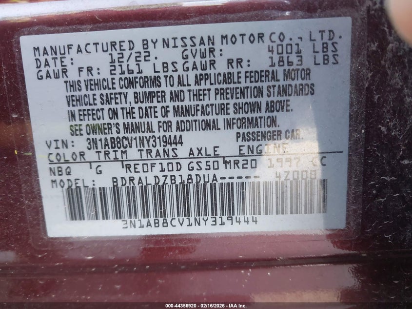 2022 Nissan Sentra Sv Xtronic Cvt