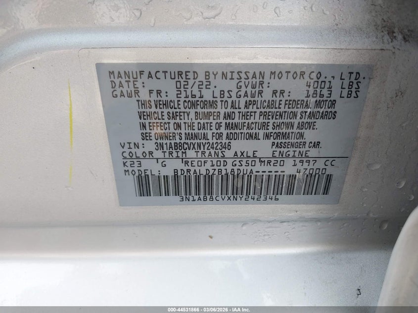 2022 Nissan Sentra Sv Xtronic Cvt