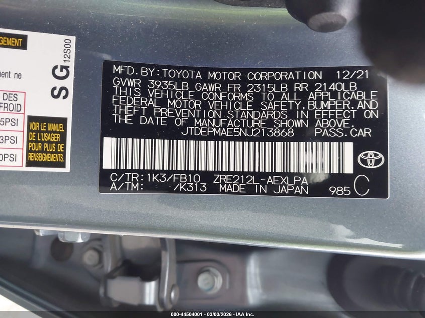 2022 Toyota Corolla Le