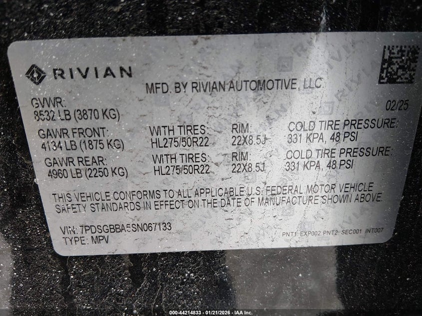 2025 Rivian R1S Adventure Dual Motor Large Pack/Adventure Dual Motor Max Pack