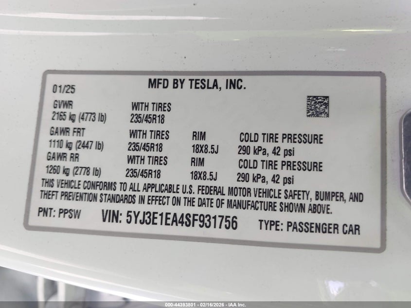 2025 Tesla Model 3 Long Range Rear-Wheel Drive/Standard Rear-Wheel Drive