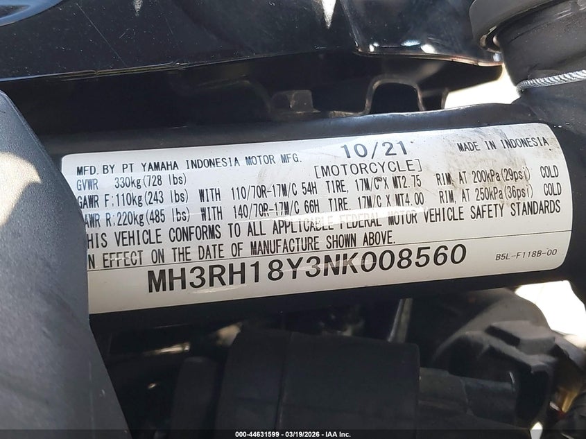2022 Yamaha Yzfr3 A